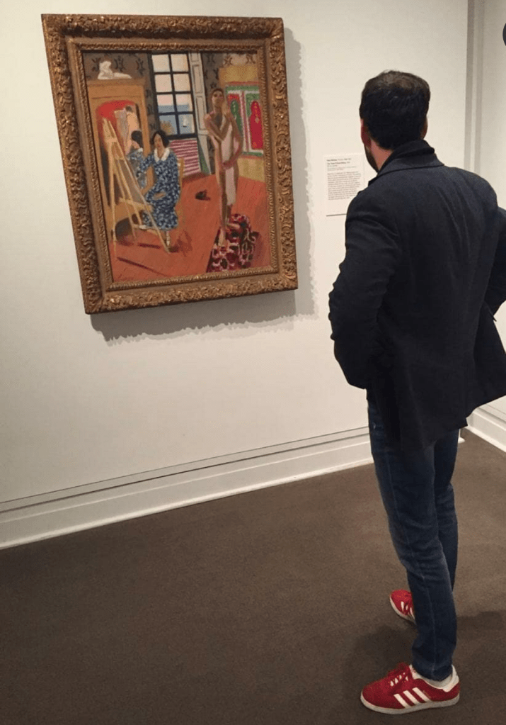 Matisse was an artist I learned to love later in life, it seemed to go hand in hand with when I started painting street art. I think the brightly colored spray paint had so many connections with his bold use of color. Now his work is something that stops me in my path when I stroll museums. There is area in the MOMA with many of his works, most notably “The Piano Lesson”, another brilliant piece. I’ve included a picture of me there in front of a different painting.