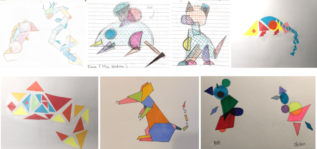 Here’s how I use Matisse’s cut-outs as a framework for making abstract art. We look at his art piece “The Snail” and discuss how it does and doesn’t look like an actual snail. I have the student watch the video previously mentioned and then complete an investigation on Matisse using their computers to research the answers. We then start transforming the animals from the Chinese zodiac into Matisse inspired abstractions. Students search realistic photos of the animals and use those as a basis to make shapes that could be the animal. I originally taught this project in Shanghai so the Chinese zodiac made sense as a reference, but you could do anything. I would stick to animals, and doing many of them, because it’s in the repetition where one starts to get better with abstraction. You can (and should) make these out of paper cut outs, as it will make the work even more abstract. But since I did this teaching online, we used whatever was available. This was taught to 7th and 8th graders, but like many art projects, could be adapted to suit other ages. I recommend doing a basic color lesson beforehand.