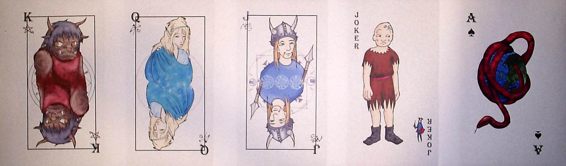 Playing Cards with year 10 students. Hand drawn, scanned, duplicated and flipped, then colored using Photoshop.