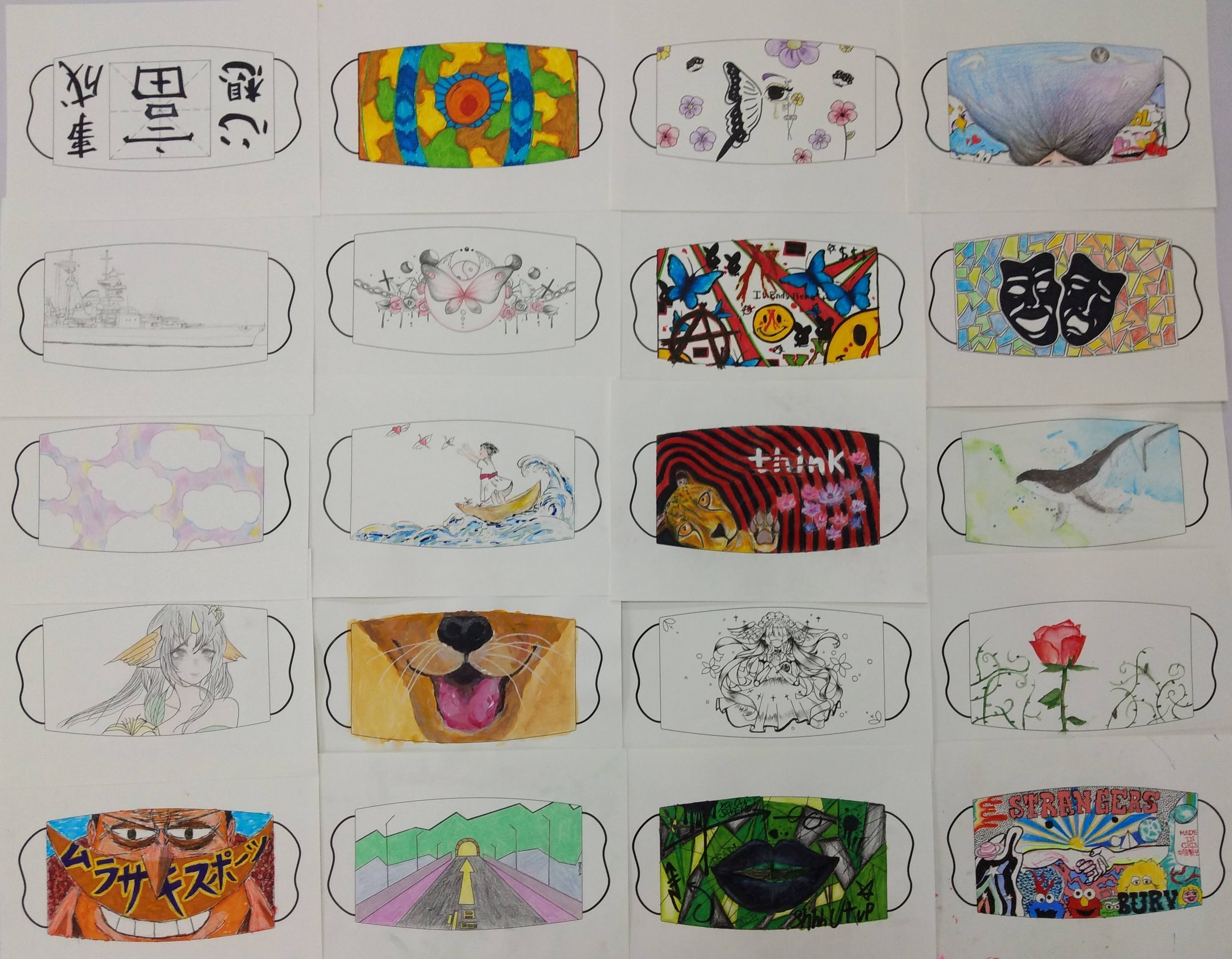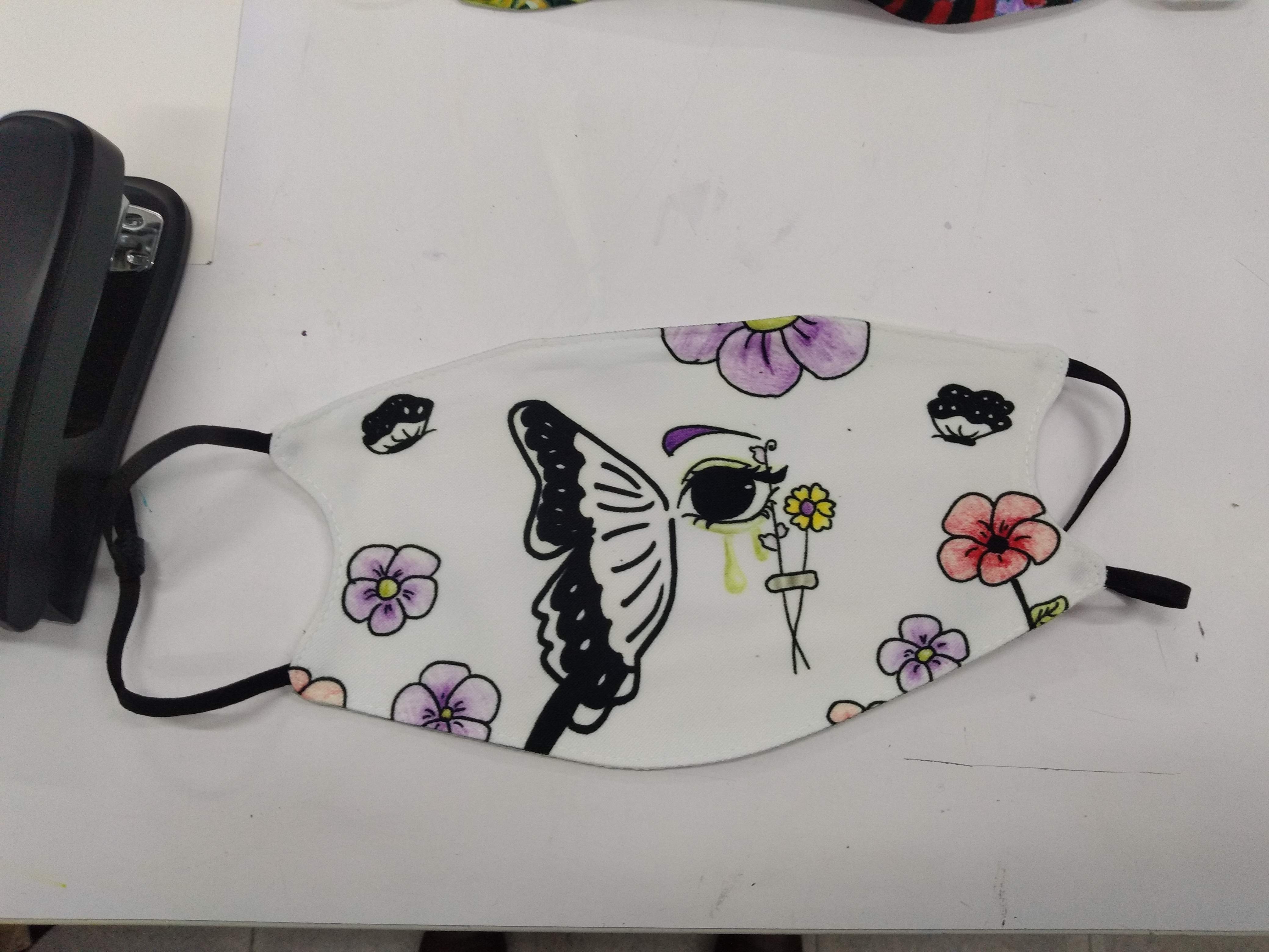 Covid masks with year 9 students. They were printed and given to the students, some of the best ones were displayed in frames.