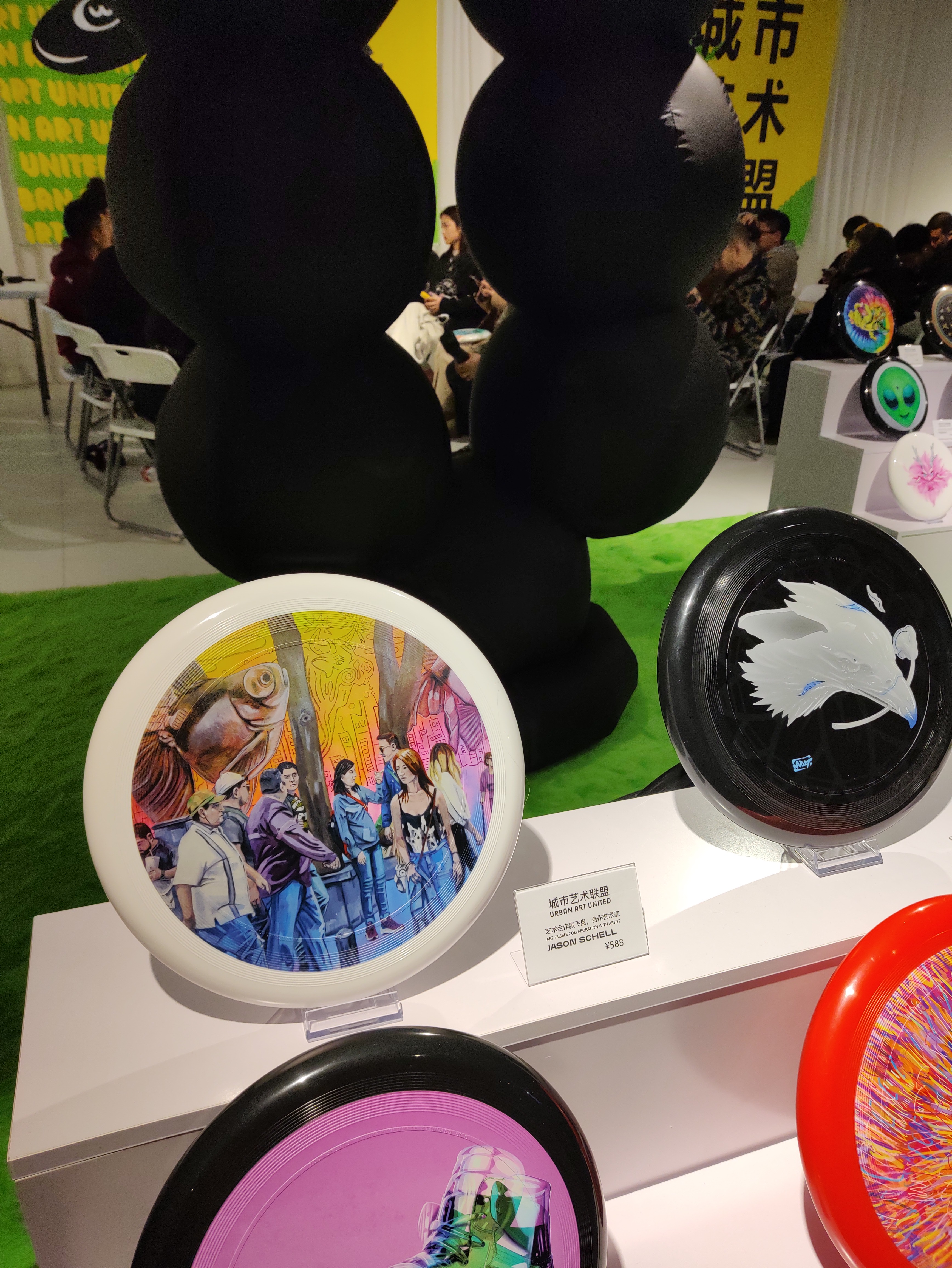My own work in an exhibition of art on Frisbees. I haven’t investigated how to do this yet with my students, but I thought I should include it as it fits the blog post.