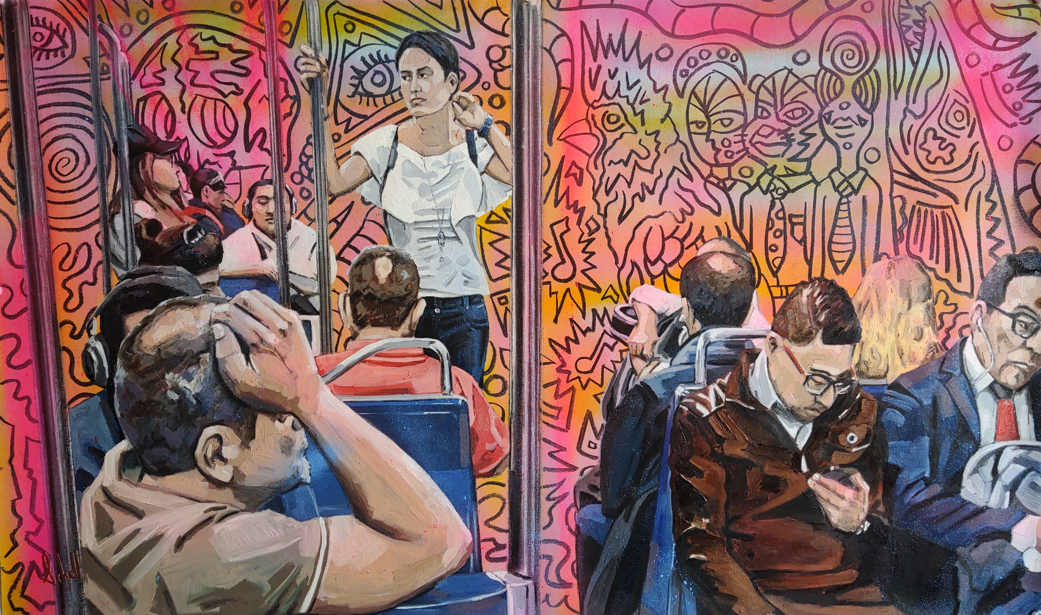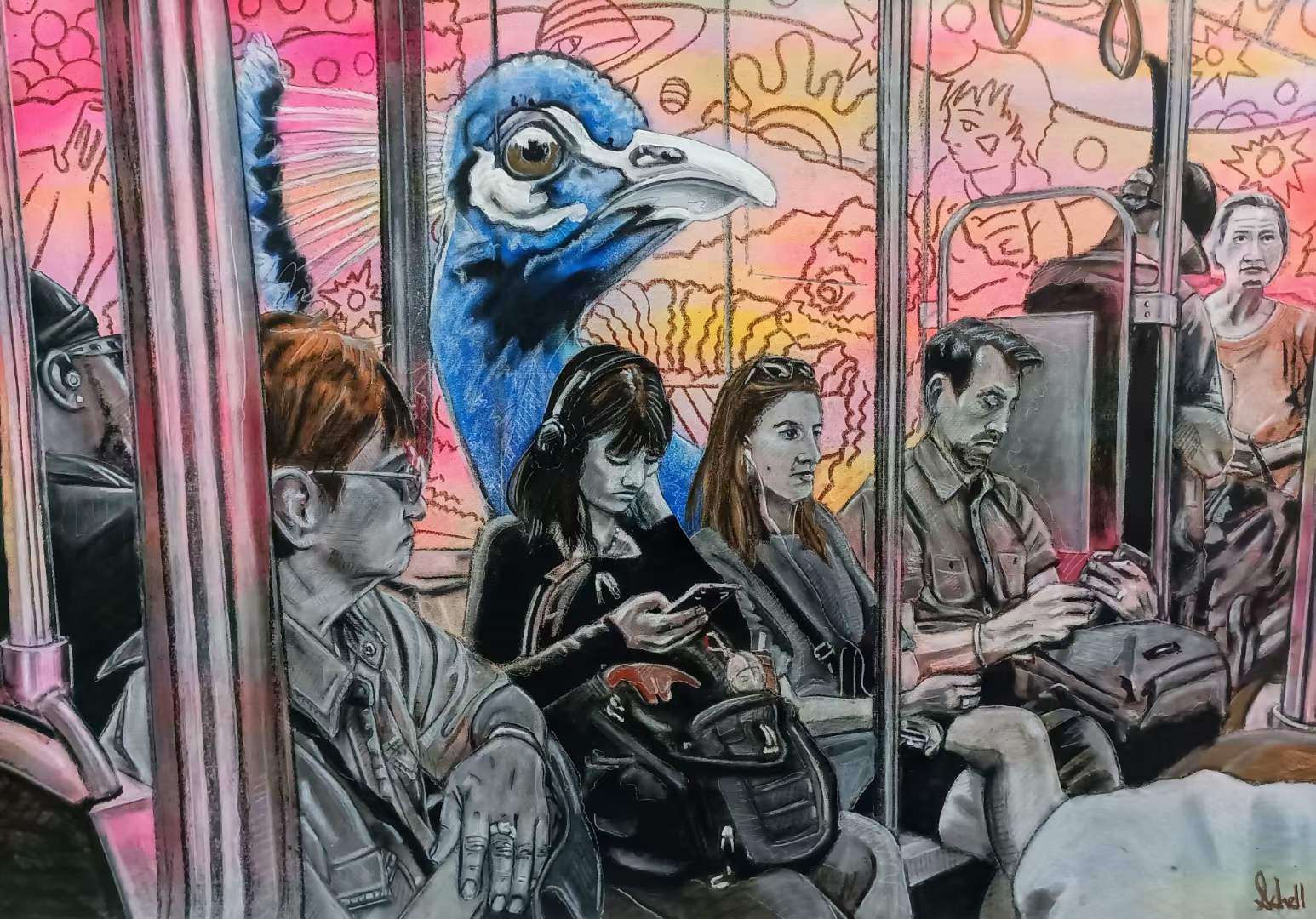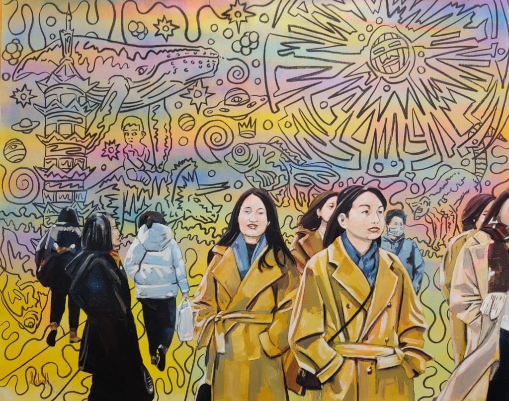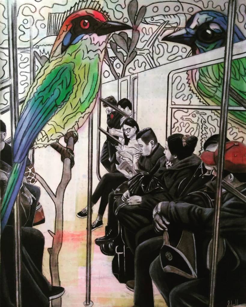 Jason Schell: Between Minutes and Seconds 85x130cmJason Schell: Chicago 116x86cmJason Schell: Materialist Migration (Outside IAPM Mall #2) 117x82cmJason Schell: Cosmic Subway 117x82cmJason Schell: Springtime on Regina Street 133x103cmJason Schell: Mexico, I Love You (with Bear and Flamingo) 130x150cmJason Schell: Metro Diaries (with Birds) 135x173cmJason Schell: Adam and Eve with Corona Virus (#2) 120x160cmJason Schell: The Baroque Life 121x91cm