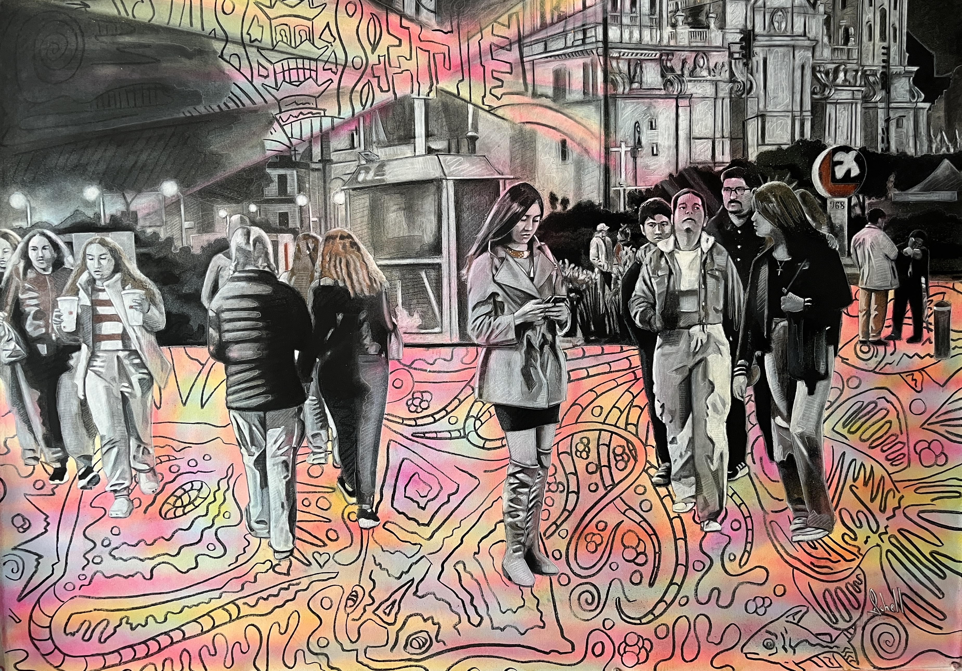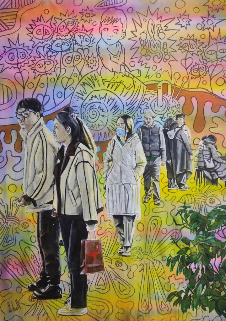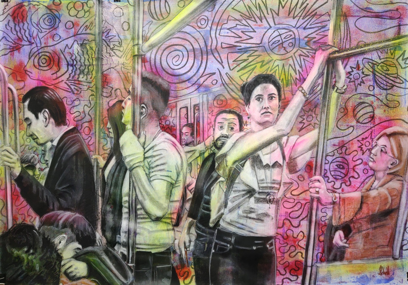 Jason Schell: Between Minutes and Seconds 85x130cmJason Schell: Chicago 116x86cmJason Schell: Materialist Migration (Outside IAPM Mall #2) 117x82cmJason Schell: Cosmic Subway 117x82cmJason Schell: Springtime on Regina Street 133x103cmJason Schell: Mexico, I Love You (with Bear and Flamingo) 130x150cmJason Schell: Metro Diaries (with Birds) 135x173cmJason Schell: Adam and Eve with Corona Virus (#2) 120x160cmJason Schell: The Baroque Life 121x91cm