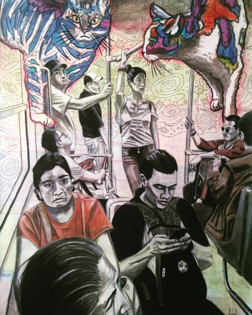 Jason Schell: On the Brink 150x100cmJason Schell: Mexico City Evening 170x118cmJason Schell: Outside Jing’An Temple 97x127cmJason Schell: Happy Past, Anxious Future 80x114cmJason Schell: Materialist Migration (Outside IAPM Mall)Jason Schell: Metro Diaries (Mexico City) 97x134cmJason Schell: Dreaming of Bangkok 111x77cmJason Schell: Metro Diaries (with Cats) 135x173cmJason Schell: A Girl Named Maria 139x198cm